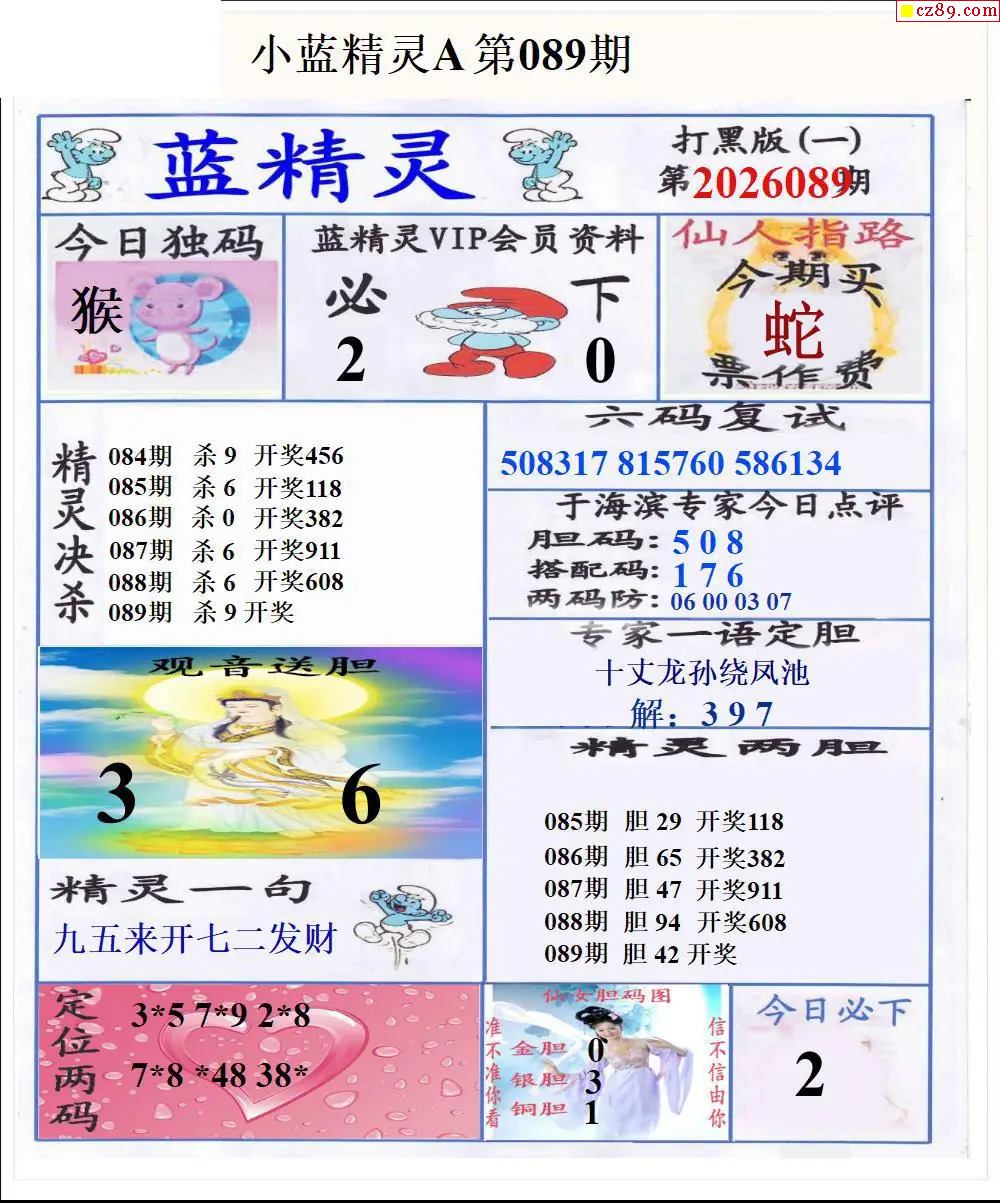 福彩3D2026089期蓝精灵AB版图谜