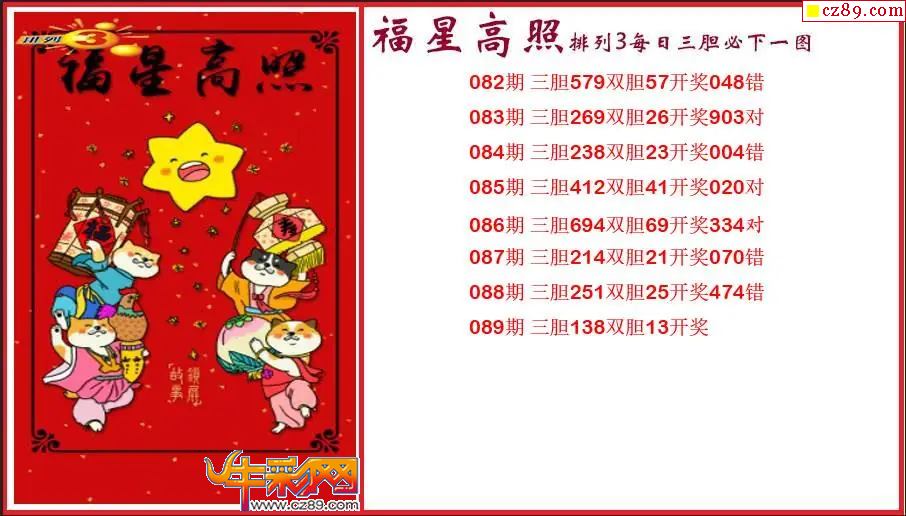 2026089期P3福星高照每日三胆必下一图