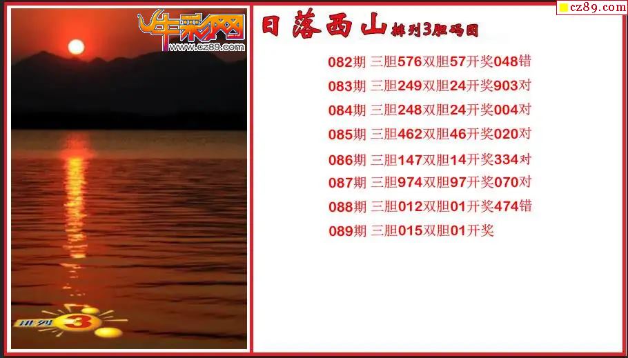 首页 > 排列3图谜 > 2026089期P3日落西山胆码图谜