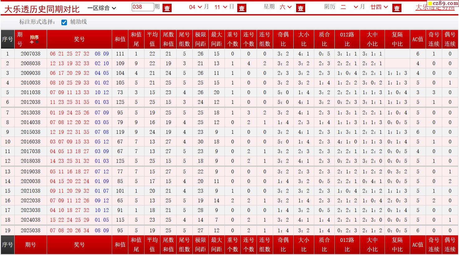 首页 > 大乐透预测 > 038期大乐透历史同期对比图