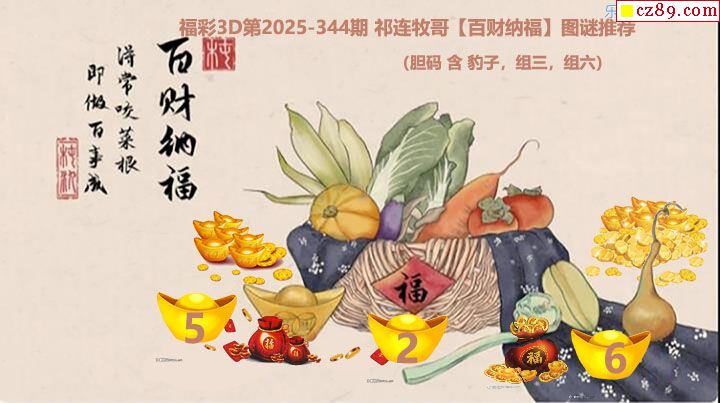福彩3D2025344期 祁连牧哥百财纳福胆码图谜推荐